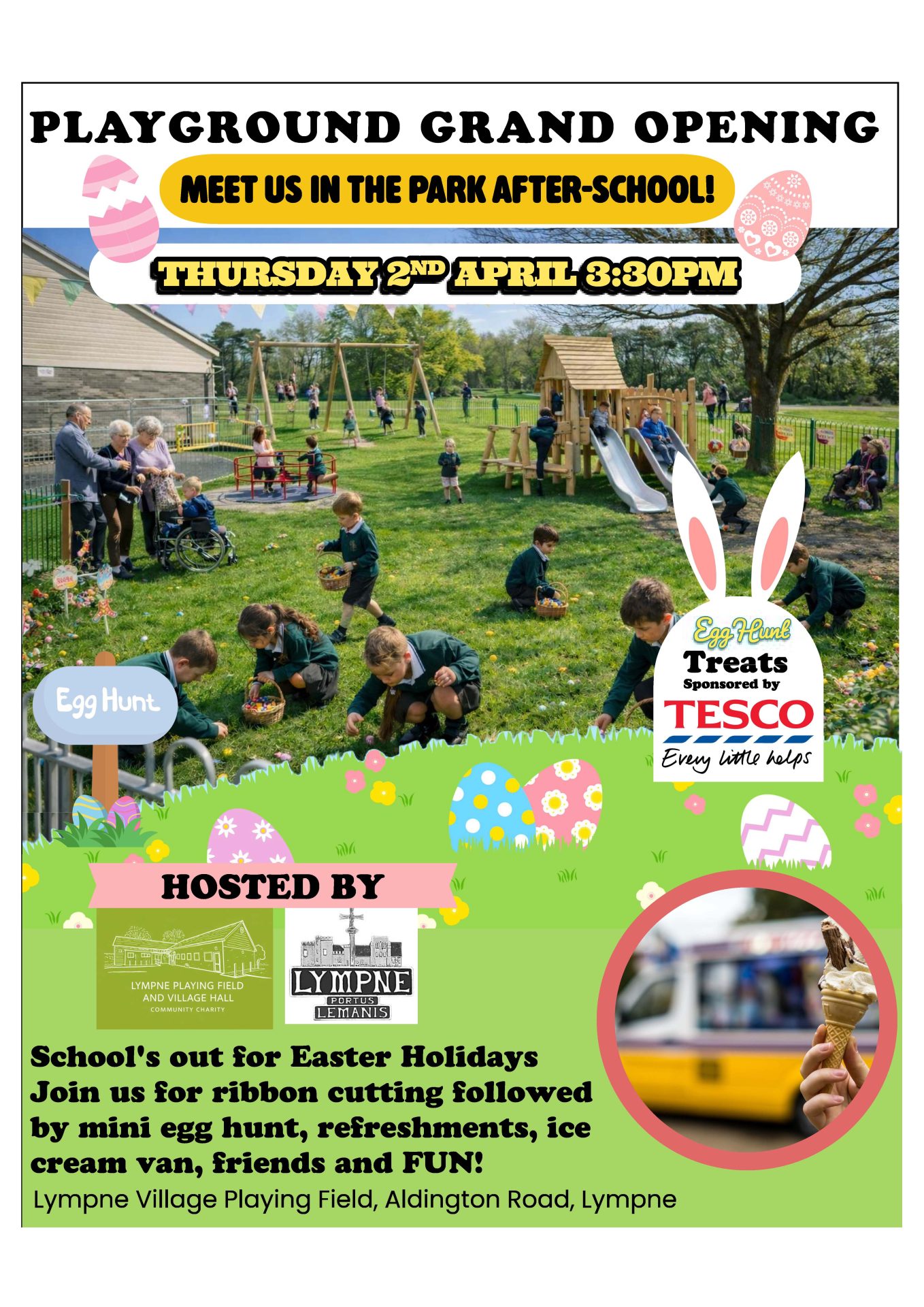 REMINDER- GRAND OPENING OF NEW PLAYPARK LYMPNE VILLAGE HALL- 3.30 pm 2nd April 2026